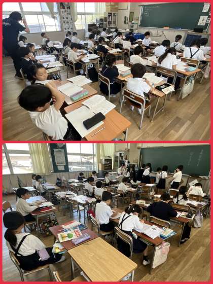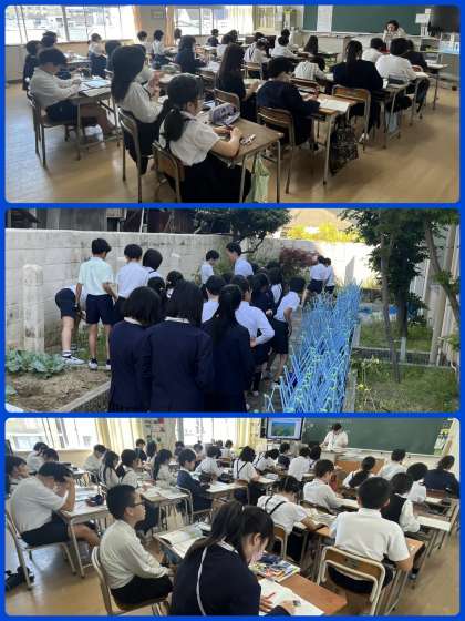 5年生理科は「植物の発芽と成長」の学習に入りました。今日は学習園に行き、アブラナを観察していました。この学習で発芽や成長のようすなど植物の育ち方を学んでほしいです。