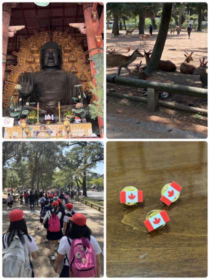 2組の人が帰りの電車で座席を外国人に譲ったところ、「ありがとう」とカナダのバッヂをもらいました。はじめは断ったものの「おみやげ」と日本語で言われもらうことにしました。その後は鶴橋駅までイングリッシュレッスンスタート。子どもたちにとっていい経験になったようです。その方たちにとって、みなさんのことが日本での思い出になったらうれしいですね。