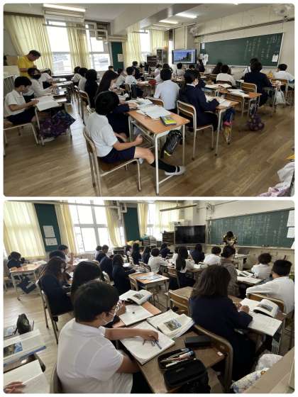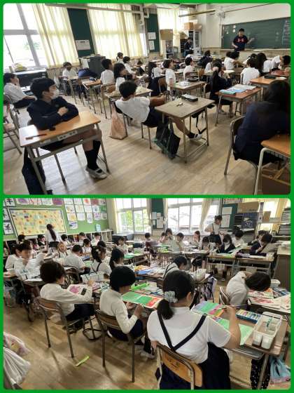 4年3組図工の学習。絵の具を使って取り組んでいました。自分の思いに合った色になるよう、色を混ぜてていねいに彩色していました。出来上がりを楽しみにしています。最後までていねいに。