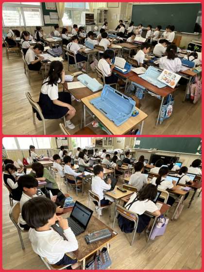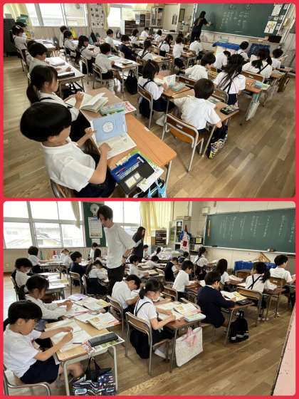 4年2組理科は「地面を流れる水のゆくえ」の学習。今日は、土の種類と水のしみこみ方の関係を実験で調べていました。この結果からどんなことがわかったかな?考えたことをまとめておきましょう。