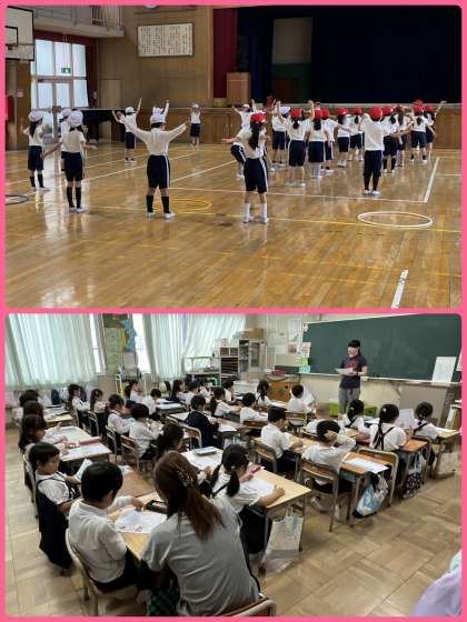 1年1組体育の学習。はじめの体操も自分たちで。すばらしい!
