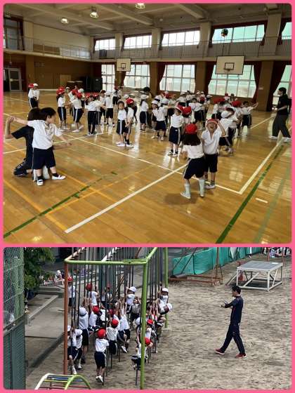 月曜日の2時間目は1年生全クラス体育の学習。1組2組はペアになって「なべなべそこぬけ〜」。3組はのぼりぼう、4組は鉄棒。それぞれのクラスがめあてを持って学習を進めていました。苦手な人も少しずつチャレンジしていこうね。