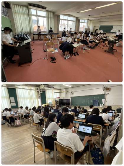 6年2組音楽の学習は合奏「ラバーズコンチェルト」。決まった楽器で一人一人練習を積み重ねていきましょう。そして心を一つに。ファイト!