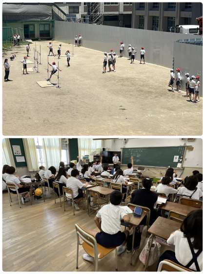 6年2組体育の学習は走り高跳び。自分の高さに合った場所を選んで、アドバイスしあいながら取り組んでいました。無理せず、でもチャレンジする気持ちも忘れずに取り組んでほしいです。