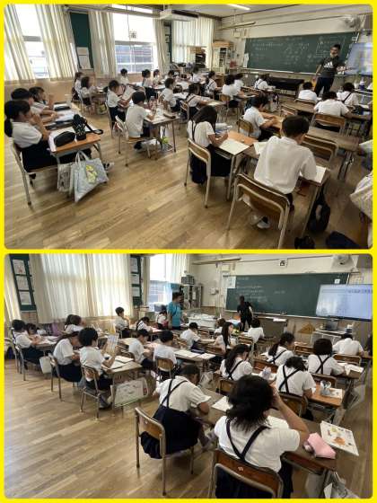 3年2組国語は習字の学習。1枚書いたあと、自分の作品、お手本を見て、次はどこに気をつけて書けばいいかをペアの人と確かめあっていました。振り返ってまた次へ。学習の大事なポイントです。ていねいにすすめてほしいです。