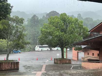 三津屋の空も同じかもしれませんが、こちらは夜中から土砂降りです。飯盒炊さんは屋根のある場所なので大丈夫ですが、他はいろいろと変更しながら進めます。