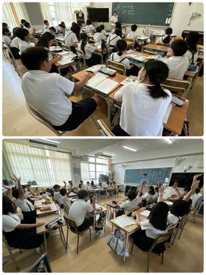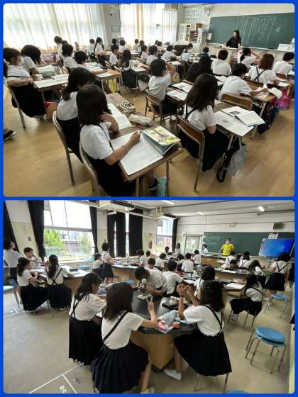5年2組理科は「花から実へ」の学習。顕微鏡で花のつくりや花粉を観察していました。花がどのように実になっていくか、しっかりと学習してほしいです。