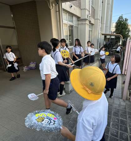 代表委員会のみなさんがいろいろなグッズを持って元気に呼びかけてくれたおかげであいさつの輪が広がりました。朝早くから本当にありがとう!