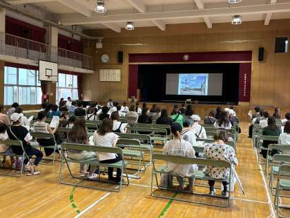 修学旅行保護者説明会を行いました。ご多用の中、またとてもとても暑い中、ご出席いただいた保護者のみなさん、ありがとうございました。お仕事等で出席できなかった保護者のみなさんは明日資料をお配りします。よく読んでいただき、ご質問等ありましたら、担任までお知らせください。引き続き健康管理もよろしくお願いします。
