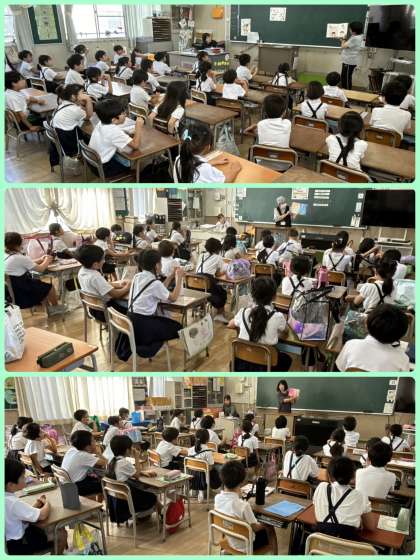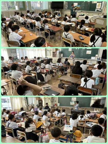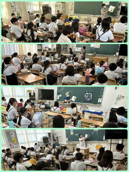 2学期はじめての『お話わくわく』。今日も15クラスで読み聞かせしていただきました。子どもたちのようすに合わせた本を選んでいただいていることもあり、本の世界に引き込まれる子どもたちでした。