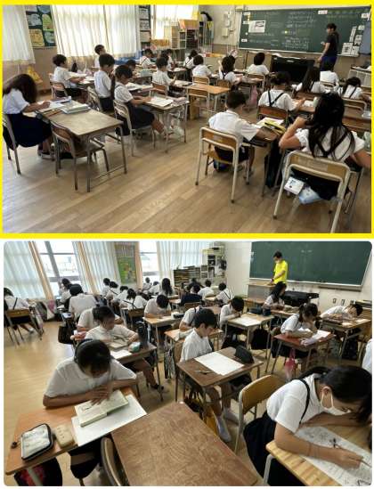 6年2組国語は「話し合いの進め方」の学習。議題に対して、それぞれの立場に立った意見を伝え合って深め合っていきます。異なる立場の意見にもしっかり耳を傾けることもとても大事になります。中学生に向けてもどんどん意欲的に取り組んでいきましょうね。