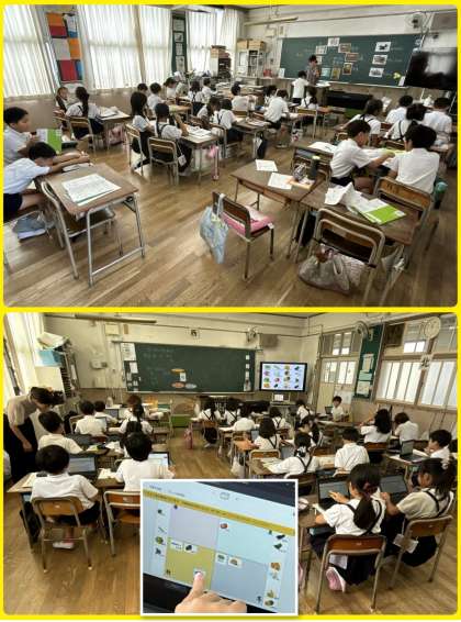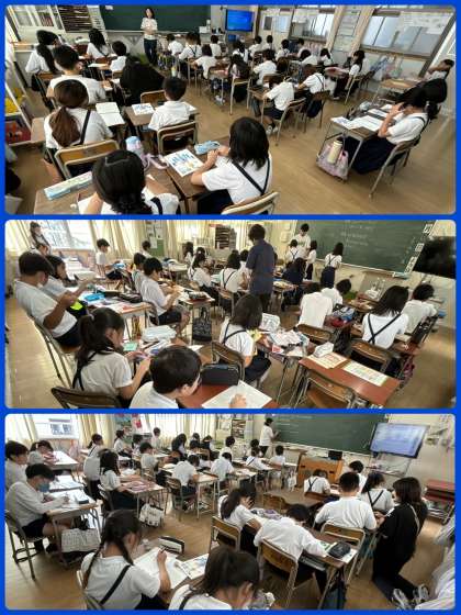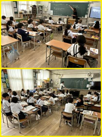 3年4組は栄養教諭による食育「食べ物の旬を知ろう」の学習。給食に出てくる食材にはそれぞれ旬があります。えんどう、グリーンアスパラガス、ゆず、だいこん、たけのこ、、、一人一人がタブレット端末を使って季節に分けていました。改めて言われると、うーん、むずかしいなぁ。みんな、わかったかな?