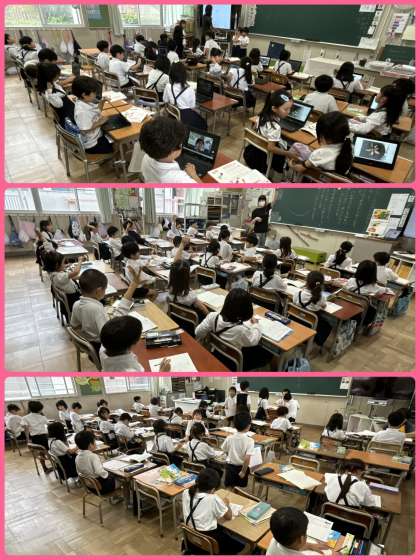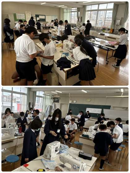 6年2組家庭科はエプロンづくり。ミシンを使って、グループで、2人で、協力しながらエプロンづくりをしていました。順調に進んでいますか?作ったエプロンをして、お世話になっている家族にごはんをつくってあげましょう!