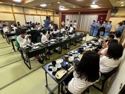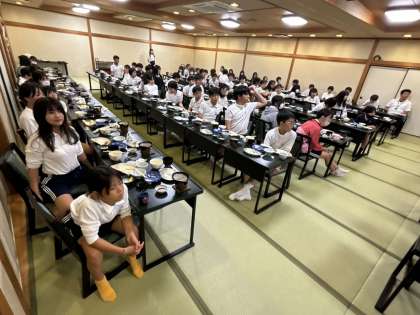 ごはんとお茶はおかわりでき、手を挙げると宿の方がよそってくれます。ごはんのおかわり4杯の人も!おなか大丈夫かなあ。