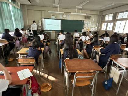 6年生が美津島中学校さんから招待いただき、小中交流会を行いました。クラスごとに授業を体験し、生徒会による中学校生活のビデオ鑑賞、そして部活動見学もさせていただきました。半年後には中学生となる6年生。進学への意識が高まったかな。少しずつ準備をしていきましょうね。