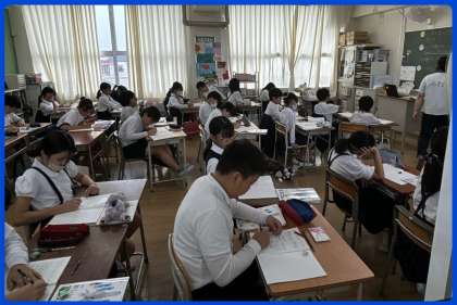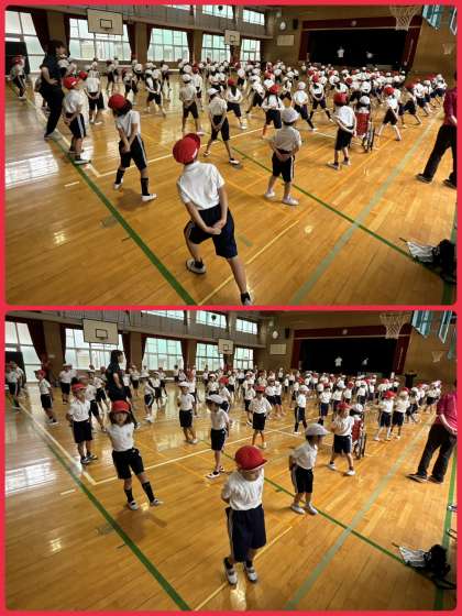 2年生は講堂で学年体育。音楽に合わせてリズムを取りながらダンスにチャレンジしていました。みぎ、ひだり、ひだり、みぎ、、、なかなか難しそうです。しっかりと覚えてがんばりましょう!