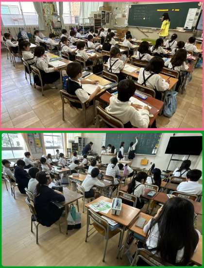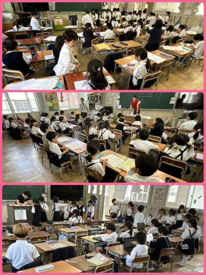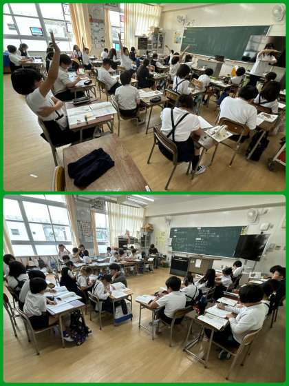 4年2組算数は「計算のやくそくを調べよう」の学習。(13+7)×6と13×6+7×6は等号でつなげられるのか、みんなで考えていました。分配法則に交換法則、結合法則…、たくさん出てきますが、計算の順序のきまりを身につけてほしいです。焦らずゆっくりね。