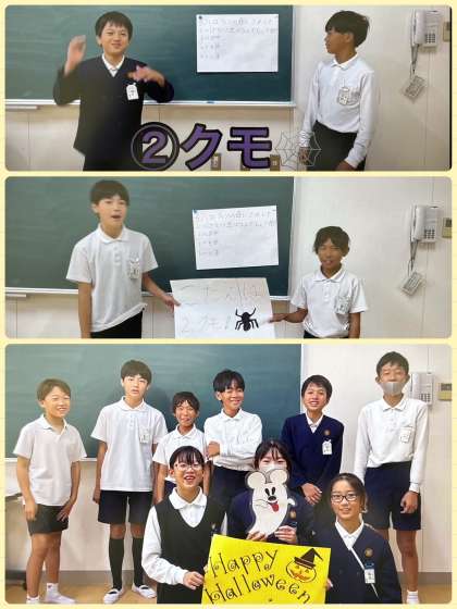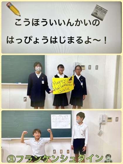 木曜日は児童集会の日。今週は広報委員会による「ハロウィンクイズ」の動画配信でした。みんな正解できたかな?