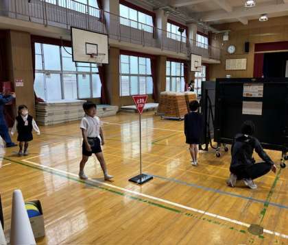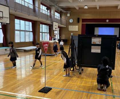 1年生は一時停止場所での飛び出し、信号が青でも「右左右」の安全確認など、主に歩行について学習しました。3年生は自転車の乗り方について。加害者になる可能性もある自転車。交通ルールやマナーを守って乗りましょうね。