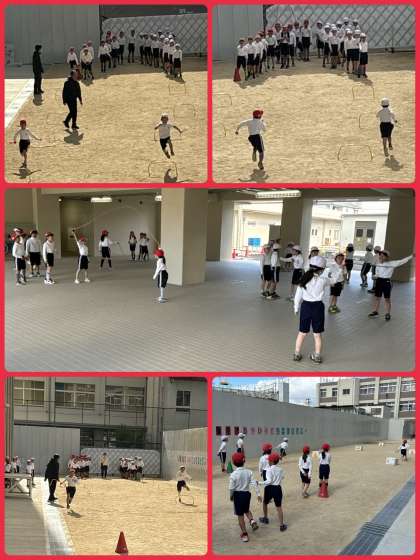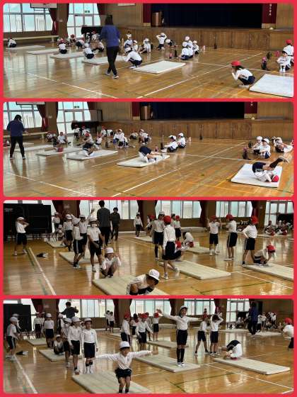 2年生は1組2組が運動場、3組4組は講堂で体育の学習を行いました。場所はどこであっても学習内容が何であっても、協力しながら応援しながら取り組む2年生です。すばらしい!