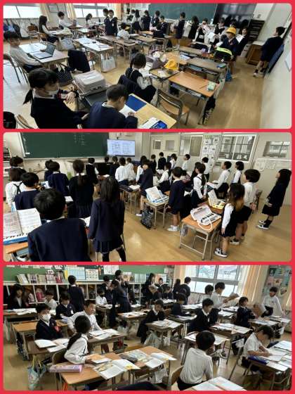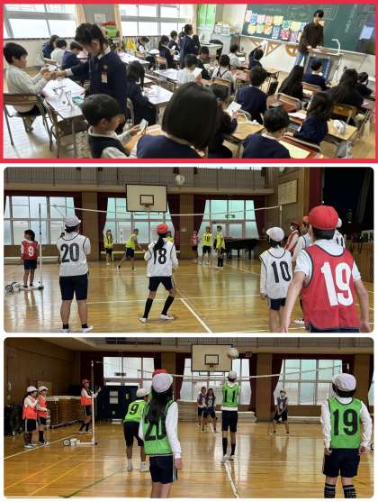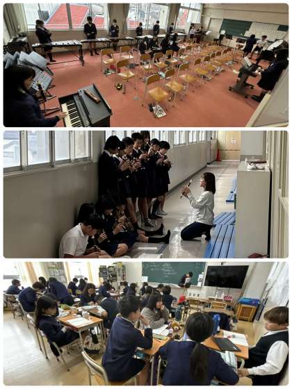 6年2組音楽は合奏。音楽室と廊下に分かれてパートごとの練習に何度も取り組んでいました。運動会と同じように心をひとつに練習を積み重ねていきましょう。