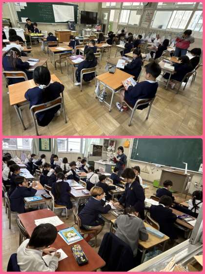 1年2組国語は「おとうとねずみチロ」の音読。声の大きさはどうかな?読む姿勢はどうかな?セリフは気持ちをこめて…、おうちでも練習している音読。どんどん上手になってきています。
