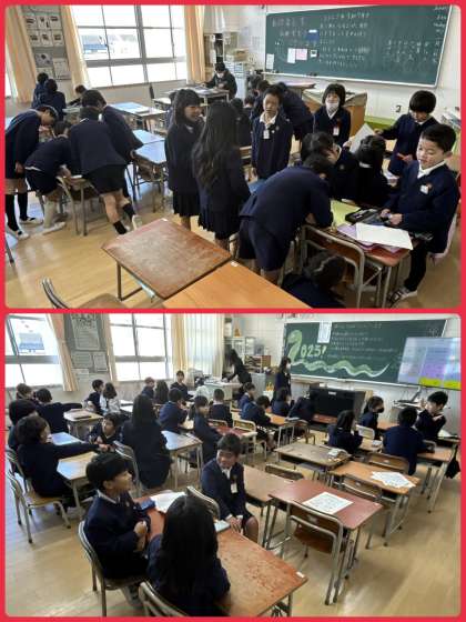 2年生のみなさん、4月になったら3年生になります。生活科の学習が終わって、新しく理科と社会の学習が始まります。英語も勉強するようになります。そして音楽ではリコーダーを習います。いろいろな学習に取り組む自分になるために、3学期はどう過ごしたらいいか、考えましょう。