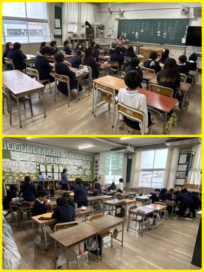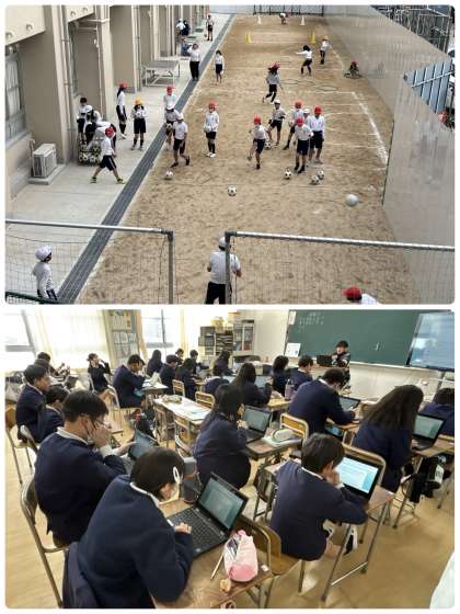 6年1組5時間目は公園遊びのため写真がありません。ごめんなさい。寒空の下、しっかり体を動かしてきたようです。すばらしい!