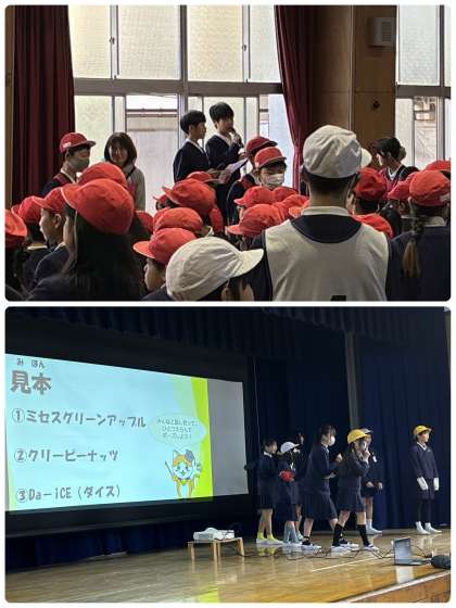 今日の児童集会はゲーム集会。イントロ3択クイズでした。グループで相談して、決まった番号のポーズをとります。結果はどうだったかな?
