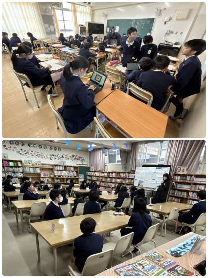 今週の学校司書さんによるブックトークは6年生。6年生の子どもたちに合うおすすめの本を紹介してもらいました。6年間たくさんの本と出合ってきましたが、まだまだ読んだことのないジャンル本もたくさん。今日紹介された本をぜひ読んで、さらに豊かな心になってほしいと思います。写真は3組です。