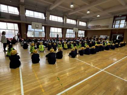 集会のあと、6年生と5年生がそのまま残り、『リーダー引継式』が行われました。