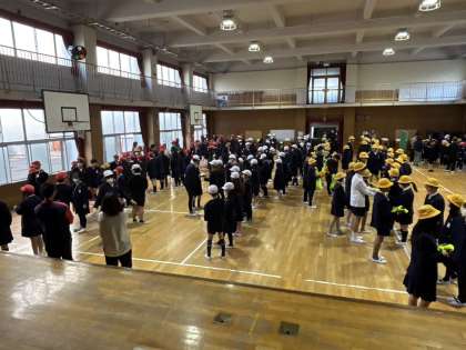 6年生のみなさん、1年間本当にありがとう!バトンを受け取った5年生のみなさん、よろしくお願いしますよ。