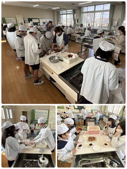 6年生家庭科の学習は、昨日の1組に続いて、今日は2組が調理実習。テーマは会食です。「ひとくちスコーン」と「紅茶」をつくりました。おいしくできたようです。食べながら友と語らいできたかな?残りの小学校生活も仲間とともに最後まで全力でね。