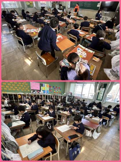 4年3組外国語活動。Today's Goal は「地図を見て場所を探そう」。学校内の地図を見ながら、英語の指示を聞いて、図工室や音楽室などの場所を探していました。