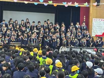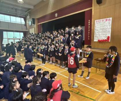 そして、「学校をきれいにしてください」と6年生手作りのぞうきんのプレゼントが。