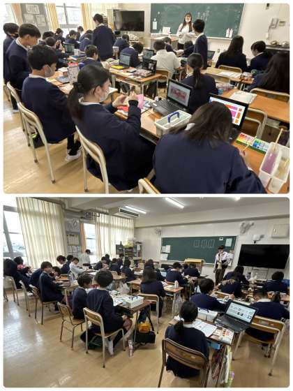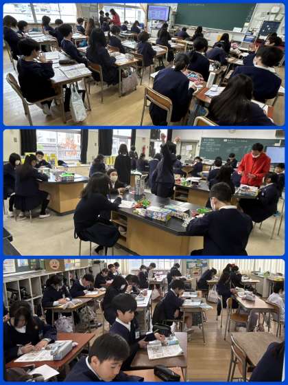 4年1組、6年2組3組は図工科の学習。6年生は卒業制作のテープカッターづくり。限 時間は限られています。集中して取り組んでいきましょう。