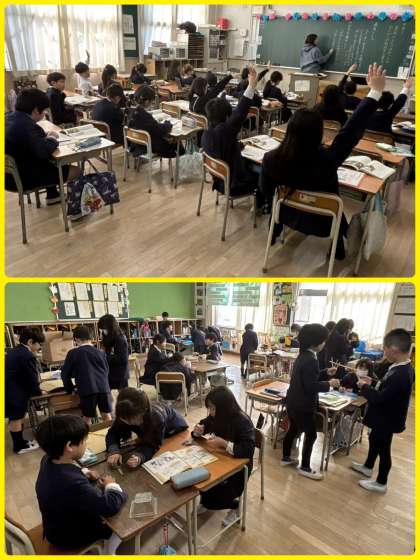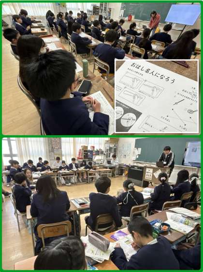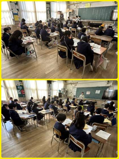 4年1組は栄養教諭による食育の授業「おはし名人になろう」。給食では、好き嫌いなく食べることも大事ですが、みんなが気持ちよく食べるにはマナーよく食べることも大事です。正しいおはしの使い方はできているかな?たたきばし、さしばし、よせばし、まよいばし、、、気をつけていきましょうね。