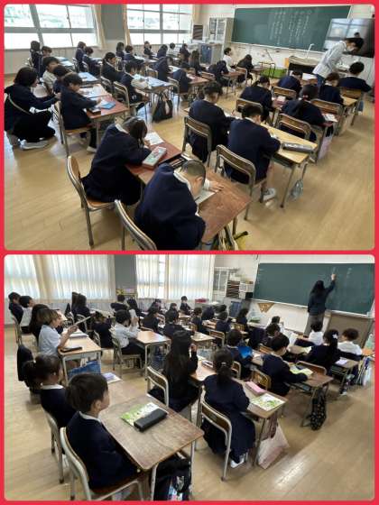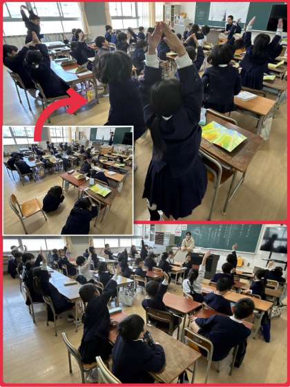 2年1組国語の学習は「たけのこ ぐん」の音読。実際に、全員が地中のたけのこになって、大きく「ぐん!」と伸びました!!音読の宿題もがんばったかな。