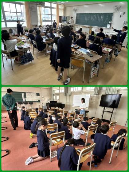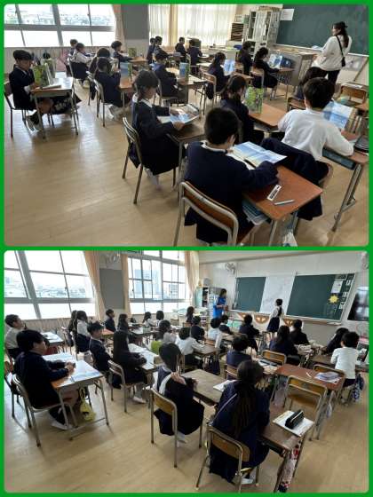 4年1組国語の学習。一行読みの音読する順番をじゃんけんで決めているところです。