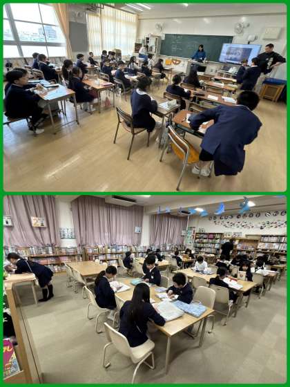 4年4組国語は図書の時間。令和7年度も一人一人が目標を立てて、図書の時間を過ごします。昨年度の自分よりもたくさん本を読んでほしいと思います。