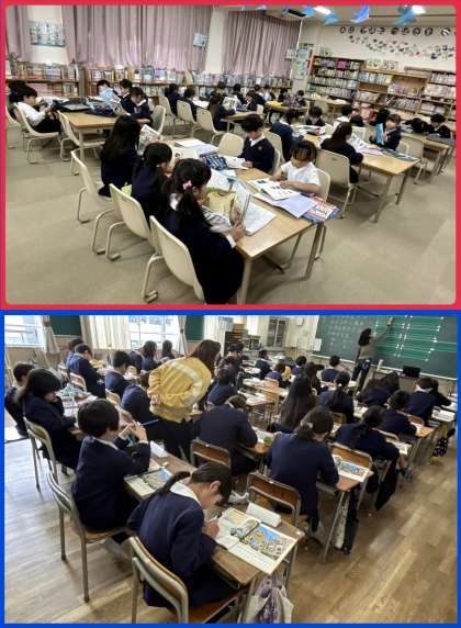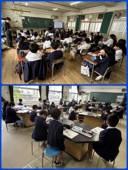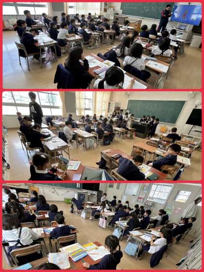 5年1組は英語、2組は算数、3組は理科の学習。担任以外の先生との学習でも、その力を伸ばしていきましょう!