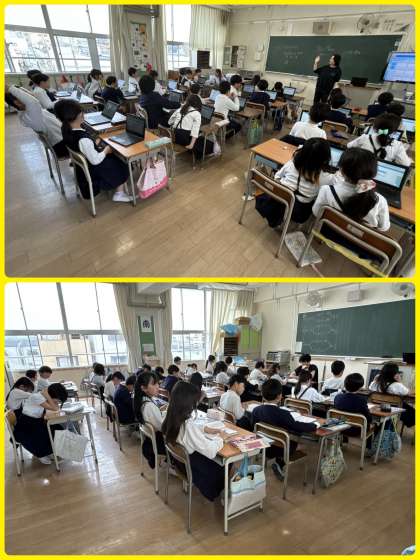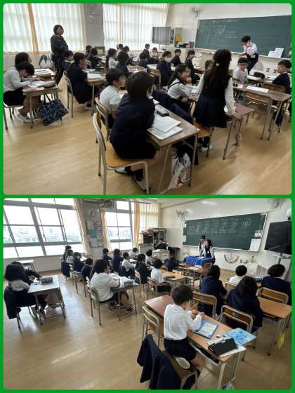 3年4組算数の学習は「九九を見直そう」。かけられる数が10を超える場合、どうすればいいかをみんなで考えていました。例えば12×4の答えの求め方は、10×4と2×4、6×4と6×4、、、今までの学習をいかしながら解決していました。