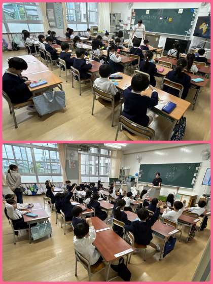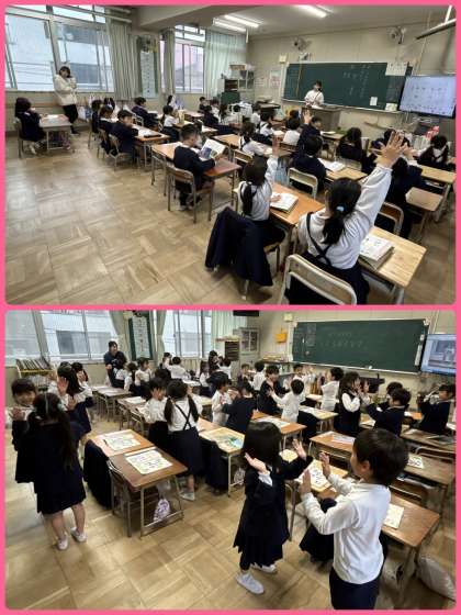 1年4組音楽の学習は「きいておどろう」。2人組になって笑顔いっぱい手を合わせながら歌っていました。保護者のみなさんもぜひご家庭で一緒にきいておどってみてください!