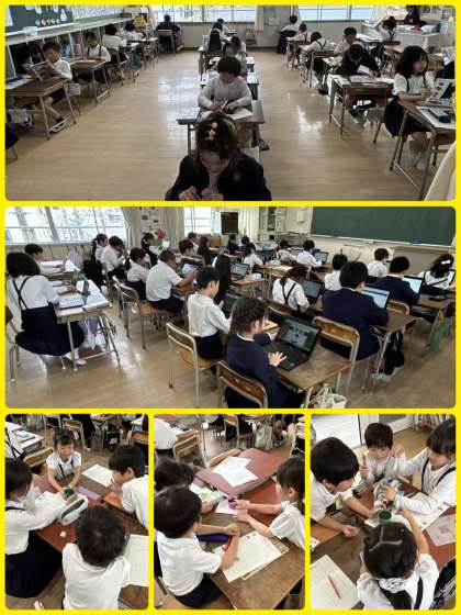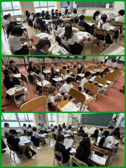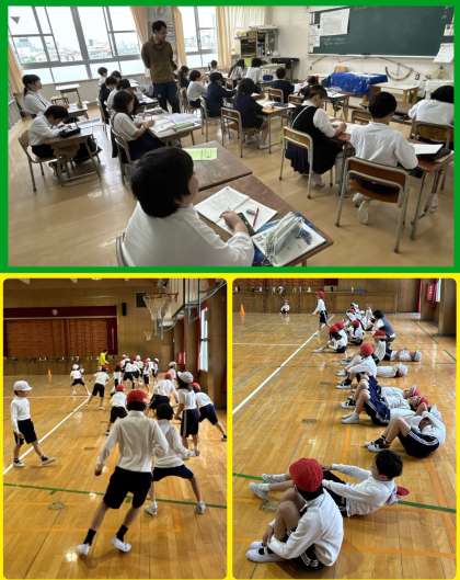 3年1組は来週から実施する「新体力テスト」に向けての学習。「反復横跳び」や「長座体前屈」の方法を先生に聞いて、お試しに取り組んでいました。週末にできそうなことがあれば、おうちの人とやってみてね。