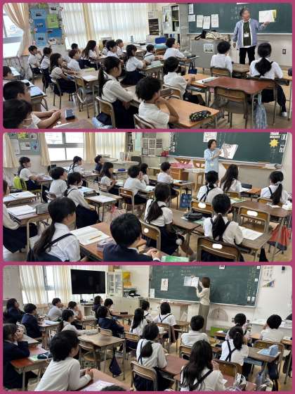 今月の「おはなしわくわく」は2・4・6年生。8時25分過ぎに登校してきた男の子に「今日はおはなしわくわくやで」と伝えると、「やったー」と早足で教室へと向かうほど、子どもたちも楽しみにしてくれているようです。