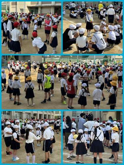 今日の児童集会はゲーム集会。初めての集会ということもあり、「ゴロゴロドッカーン自己紹介ゲーム」でした。音楽が鳴っている間はボールを回し、音楽が止まったときにボールを持っていた人が自己紹介をします。照れくさそうにしながらも笑顔の輪が広がっていきました。