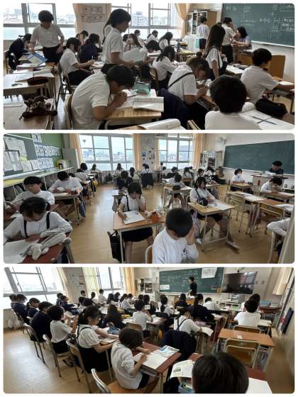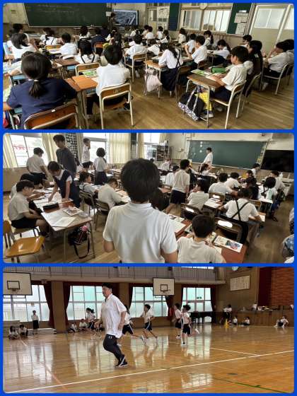 5年2組は講堂で20mシャトルラン。昨年度の自分の記録から1回でも増えていたらうれしいですね。先生も一緒にがんばっていました。