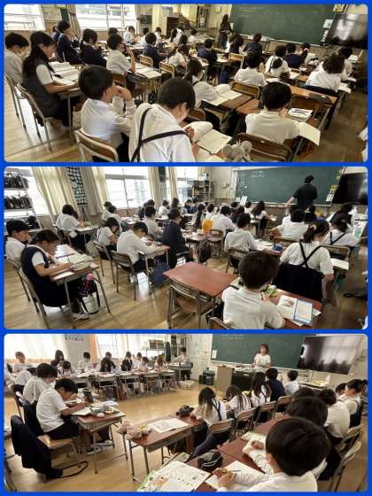 5年3組家庭科の学習。来週からいよいよ裁縫の実習が始まります。子どもたちも裁縫道具を使うことを楽しみにしているようです。がんばっていきましょうね。