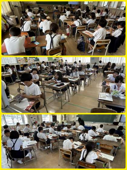 4年2組4組は書写「羊」に取り組んでいました。一画一画ていねいに書いていました。納得のいく「羊」が書けたかな。掲示されたら見に行きますね。