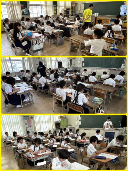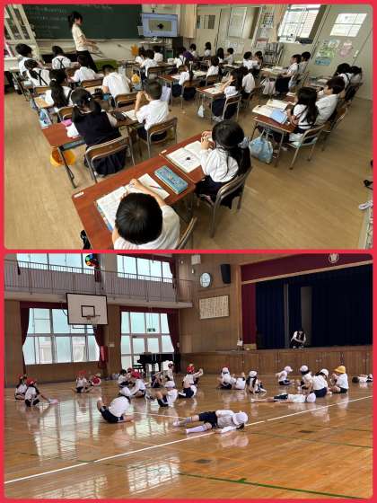 2年2組音楽の学習。音の高さに気をつけながら、「かえるのがっしょう」を鍵盤ハーモニカで演奏していました。どのような吹き方をすると、かえるのようすを表すことができるかな。
